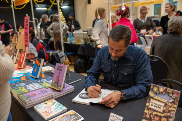 Doing a quick dédicace at the Read Quebec Book Fair